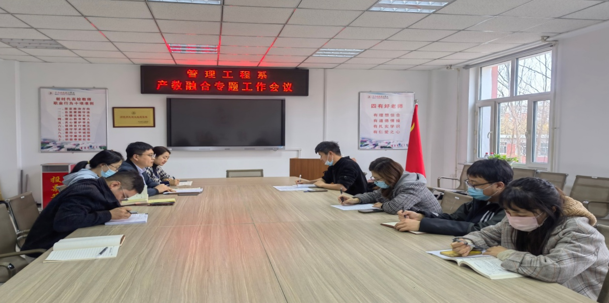 10月26日下午,管理工程系组织召开产教融合专题工作会议。系主任陈景鑫、实验中心主任、各专业负责人及专业助理参加,系副主任张洪岩主持。 会上,大家就电子商务产业学院建设、专业实体运营管理、优化实践教学、培...
