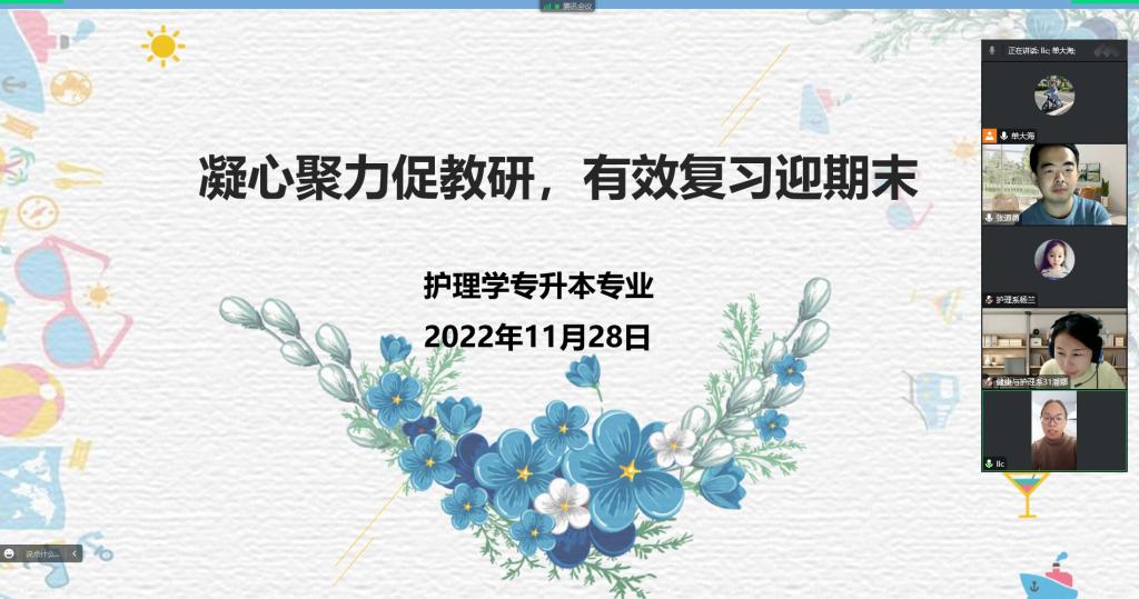 11月28日,护理学专升本专业线上开展集体备课活动。专业全体教师参加,专业长单大海主持。 首先,教师提出自身在复习教学中遇到的困惑,如怎样整理知识、未返校的线上同学如何复习、如何关注后百分之二十的学...