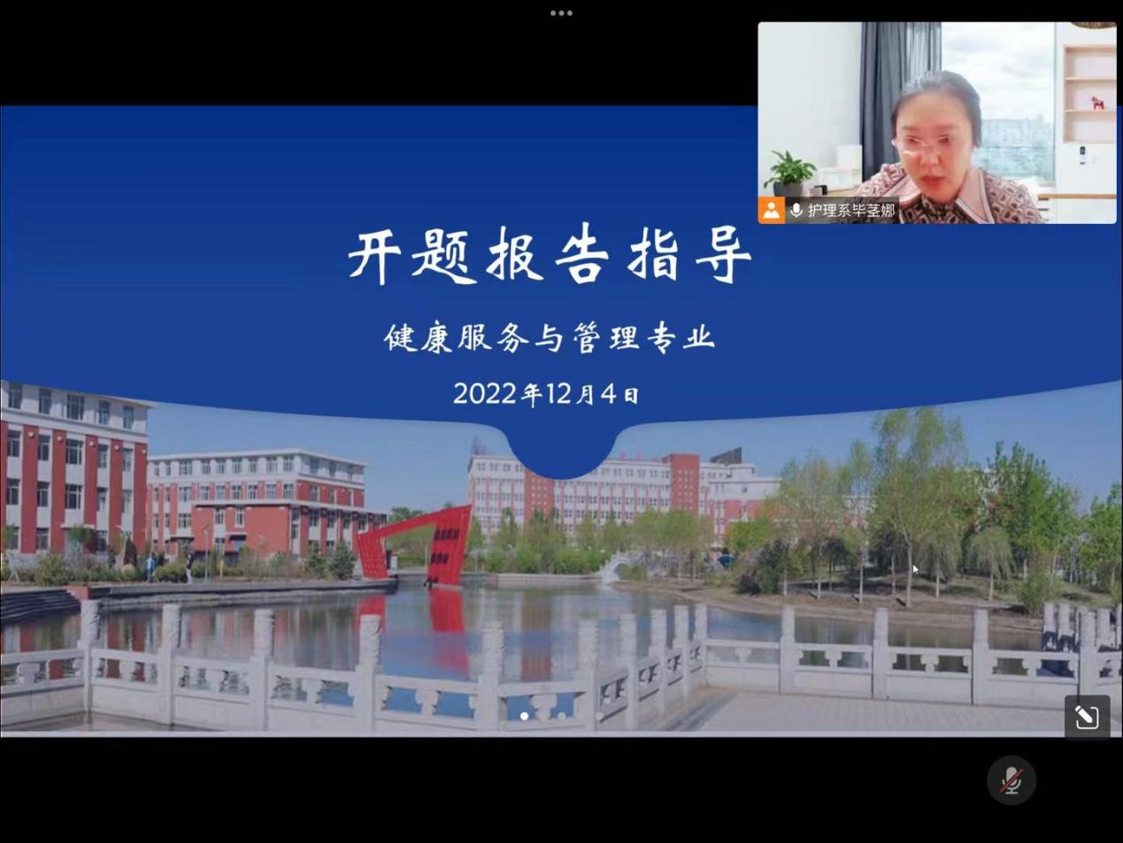 近日,健康与护理系健管专业召开线上论文开题报告指导会。健管191班在白渔泡精神专科医院大的9名实习学生和在校11名学生参加,相玉秀老师主持。 相老师对即将开展的开题报告进行详细讲解。从开题报告的选题依据...