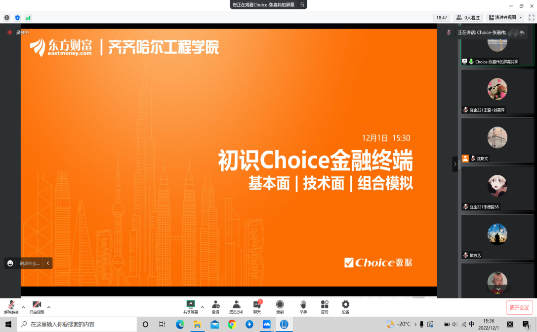 12月1日下午,互联网金融专业在线举办了第十期易湖金融论坛,邀请东方财富Choice产品部、Choice数据高级培训讲师张嘉伟主讲。专业老师沈斯文牵头组织,互联网金融专业全体学生参加。 论坛上,张嘉伟讲师围绕金...
