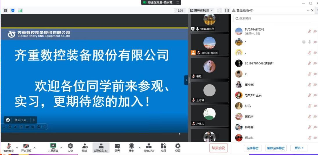12月16日下午,我校机电工程系组织2023级本科机械设计制造及其自动化专业毕业生参加齐重数控股份有限公司线上招聘会。 招聘会上,齐重数控公司的陈经理介绍了公司背景和所需岗位要求,并对有求职意向的学生提出的问...