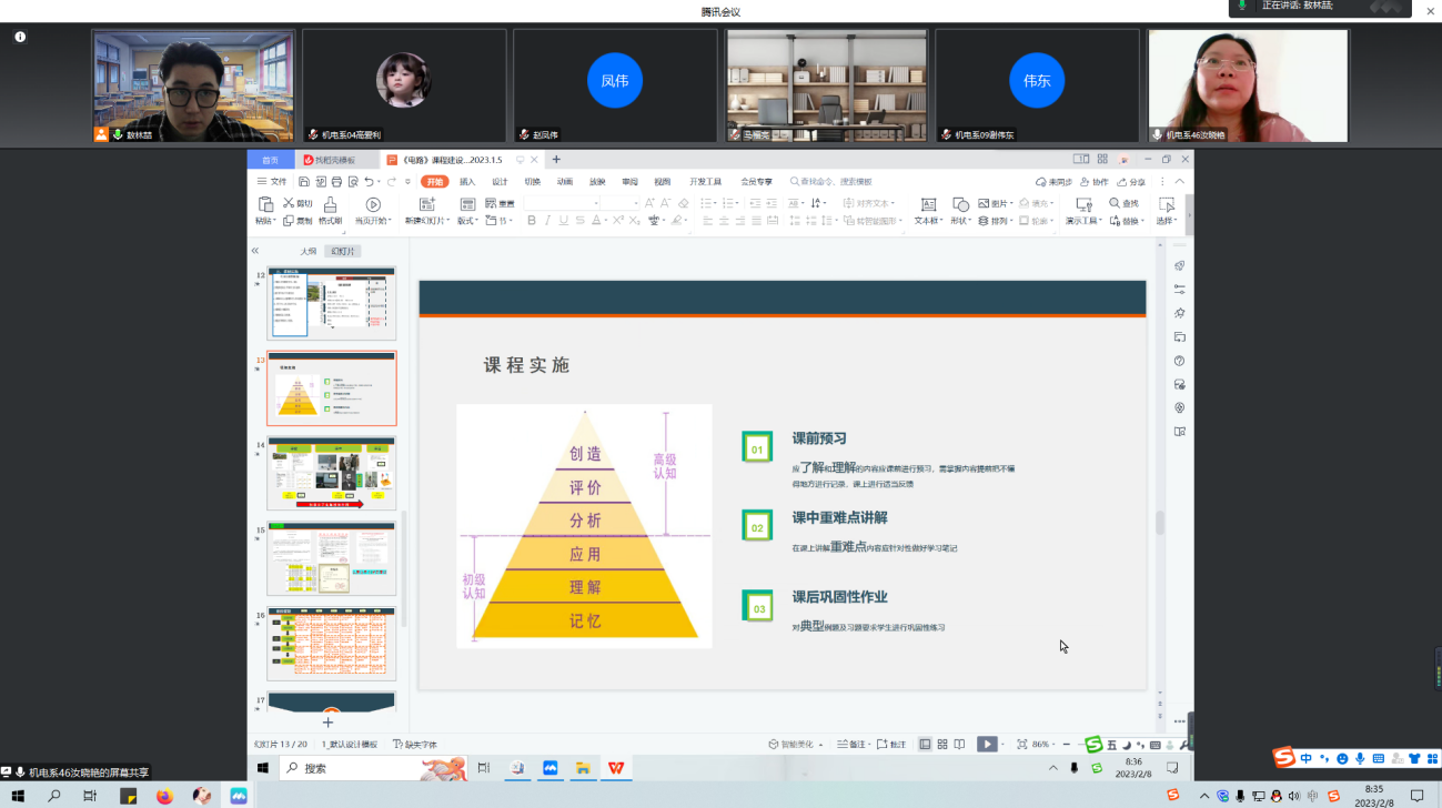 2月8日,机电工程系线上开展了系级2022至2023学年第二学期期初说课审查活动。系全体教师参加,系主任助理敖林喆主持。 为落实学校在第十一届特色课评比过程中提出的课程建设要求,敖林喆对教师2022至2023学年第二学期...