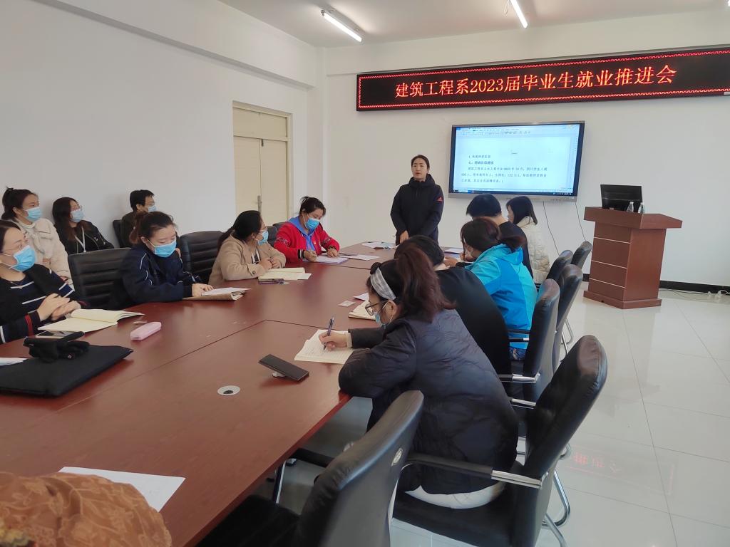 3月14日,建筑工程系在二号教学区2410会议室召开2023届毕业生就业推进会。院长助理、系主任陈景鑫,系党总支书记刘贤鹏,以及全体教职工参加,教学工作副主任徐明主持。 会上,徐明对各专业就业情况进行了分析,讲明...