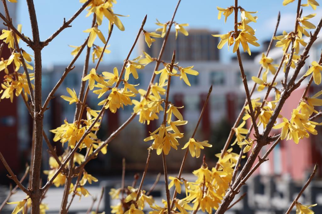 春日,花草在阳光中静静绽放 春光不负有心人 于此,向浪漫的四月寄一封信笺 细看齐齐哈尔工程学院的春日画卷 蓝天下,金黄色的连翘花在枝头摇曳 黄花扑面香,嫩枝泛新绿 阳光中,花儿诉说春天的故事 展现最美的容颜...
