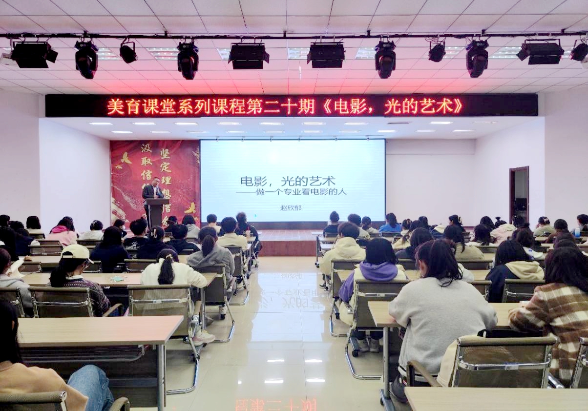 为完善美育建设,提高学生的审美能力,校团委举办美育课堂系列活动,我校学子积极参与。10月11日18时,团委开展美育课堂系列课程第二十期,特别邀请齐齐哈尔大学外聘教授、省作家协会会员赵欣郁老师在2号教学区2508教室以《电影,光的艺术》为题进行讲座。赵老师向学生介绍了如何做一个专业看电影的人,讲述电影展现的艺术美感,让学生丰富了课余生活的同时感受到了不一样的电影世界,也感受到了电影艺术的美。10月18日下午,...