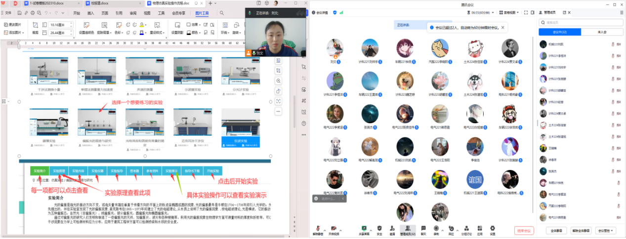 11月6日,为了更好的促进大学物理虚拟仿真实验平台的使用并解决存在的问题,同时深入落实以赛促学的理念,组织物理虚拟仿真实验竞赛,为此,大学物理教研室组织2022级理工类各专业学生,共计80余人,进行物理虚拟仿真实验平台使用培训,会议通过腾讯会议在线上进行。本学期大学物理实验室最新引进物理虚拟仿真实验平台,学生从开学初开始应用此平台进行实验操作的预习与复习。经过学习,学生基本能够自学使用该平台,同时也集中...