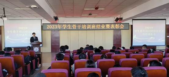 11月14日中午,2023年学生骨干培训班结业暨表彰大会在图书馆501室召开,本次会议是对2023年学生骨干培训工作及黑龙江省高校就业育人研讨会志愿服务工作进行总结表彰。学生发展中心主任康静,信息工程系党总支副书记孙晓芳,机电工程系党总支副书记郭明敬,管理工程系系党总支副书记王丽伟出席本次会议。会议由学生代表罗鸿伟主持。 全省高校就业育人研讨会志愿服务工作我校学生共分为7个接待组, 在总结过程中,各组学生代表对...