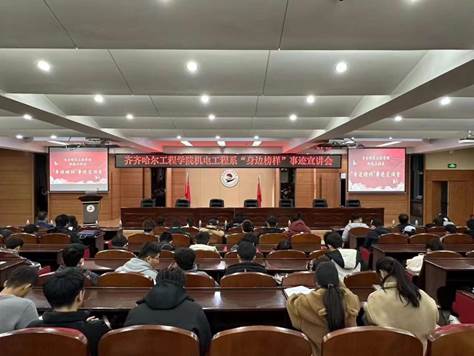 立起身边榜样,激励人人出彩。为树立当代大学生的先进典型,发挥榜样的模范带头作用,引导和激励广大青年学生勇担时代使命,11月15日晚,机电工程系在图书馆601会议室举办了“身边榜样”事迹宣讲会。中国能源建设集团东北电力第二工程有限公司项目经理张德志,齐齐哈尔工程学院机电工程系副主任敖林喆、党总支副书记郭明敬、电气工程及其自动化专业长刘智、全体辅导员及机电工程系各年级学生代表200余人参加。宣讲会上,电气工...