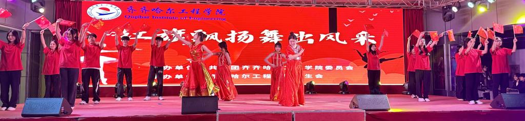11月21日晚,为丰富学生的课余生活,弘扬爱国精神,展示大学生的青春风采,由共青团齐齐哈尔工程学院委员会主办,学生会承办的“红旗飘扬,舞出风采”舞蹈大赛在汽车大楼学生活动中心举行。各系学生会主席与文艺部部长参加活动并担任比赛评委,200余名学生参加。本次舞蹈大赛共有来自各系的10支队伍参赛,选手们经过为期一个月的精心准备,为观众带来了一场视觉盛宴。选手们围绕“红旗飘扬”为主题进行编排和表演,《党旗飘扬...
