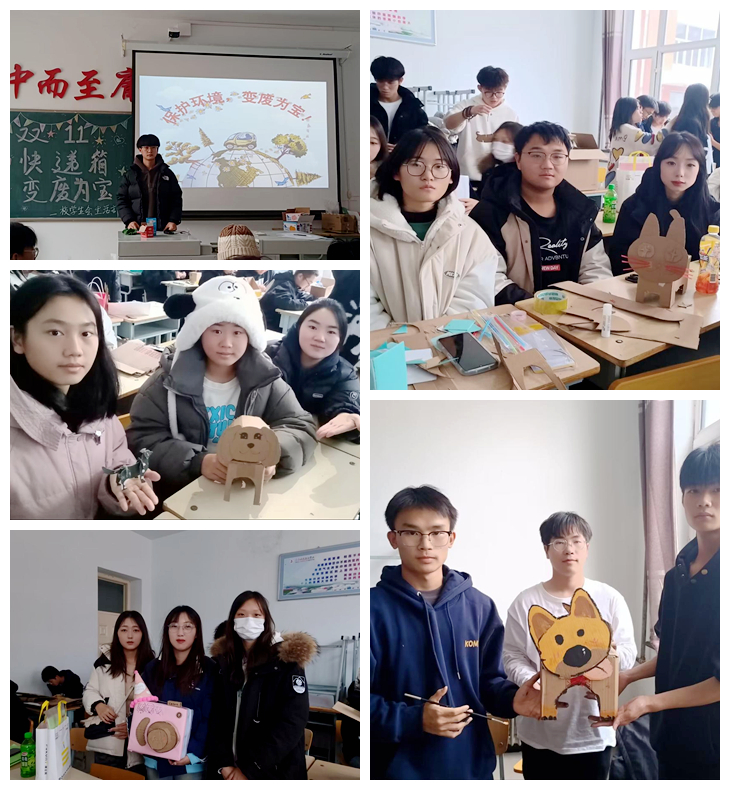 近日,校学生会生活部在一号教学区1106室开展“双十一快递箱变废为宝”主题手工DIY活动,同学们用各种快递盒制作不同的精美物品,将它们“变废为宝”,本次活动共60余人参加。本次活动旨在引导学生进一步增强环境保护意识,积极参加环保实践活动,努力形成全员关心环保、参与环保的良好氛围,培育生态文明意识,培养资源节约型、环境友好型的生活习惯和消费观念,让保护环境成为同学们的一种自觉行动。 学生用提供的工具和自己...