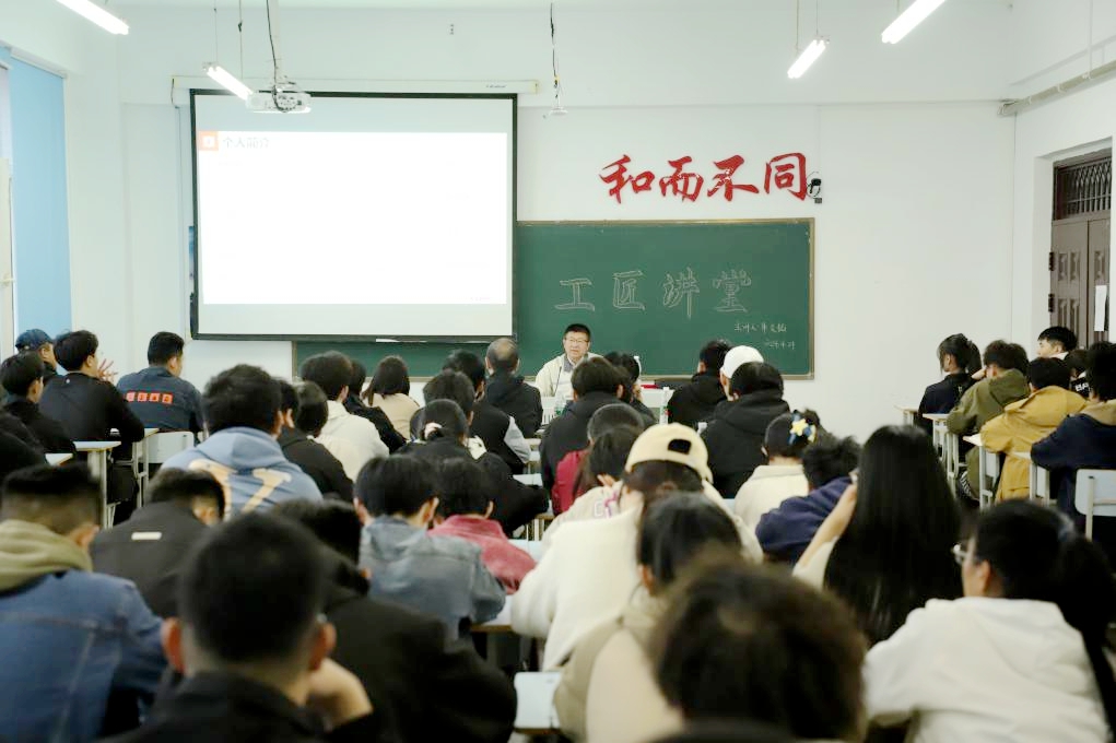 4月24日晚,机电工程系组织师生在图书馆310教室开展第六期“工匠讲堂”活动。本次工匠讲堂特邀省劳模朱文韬教授主讲,系党总支书记刘微、机械专业教师李运强、辅导员以及机电工程系学生近100人聆听讲座。本次活动由学生高亚亚主持。授课前,刘微为朱文韬教授颁发机电工程系育人导师聘书。朱文韬教授向学生介绍了工匠精神的内涵。指出,匠心是一种精神,也是一种信仰;匠心是一种态度,更是一种情怀和信念,工匠精神是一种修行...