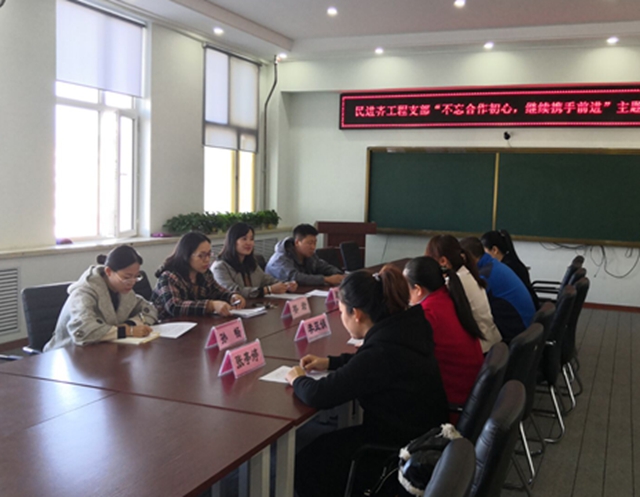 11月1日,民进齐齐哈尔工程学院支部召开“不忘合作初心、继续携手前进”主题教育座谈会。 支部主委姜岩主持此次座谈并传达民进省委八届八次常委会精神,并要求会员认真学习《民进中央关于进一步加强宣传思想工作的意...