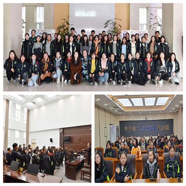 11月5日下午,英语191班全体同学由李玄晔老师和王丽伟老师带领,来到齐齐哈尔市中级人民法院参加法院公众开放日活动。 同学们首先参观了法院的阳光大厅、数字化审判法庭等场所,观看了全市法院扫黑除恶专项斗争专题片...