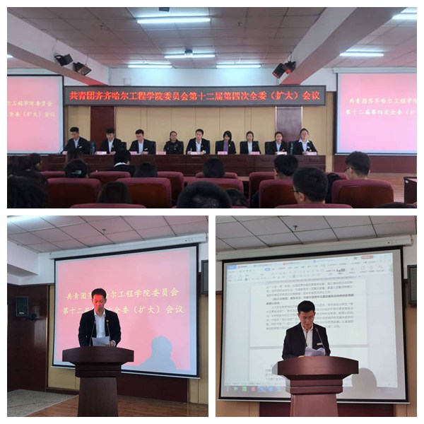 经学院党委批准,11月13日,共青团齐齐哈尔工程学院委员会第十二届第四次全委(扩大)会议在图书馆501报告厅召开。 学院团委书记周伟与全体团委委员、各系团总支书记及150名团员代表参加会议,学院团委委员齐晨旭主持...