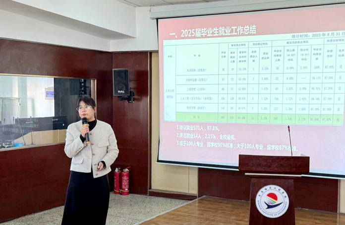 10月23日下午,土木与管理学院在图书馆501会议室召开2025届毕业生就业工作总结会暨2026届毕业生就业启动会。副校长张静出席会议,土木与管理学院党委书记、院长徐明,党委副书记刘贤鹏,产业副院长贺全德以及学院生涯导师参加会议,共同总结过往就业工作成果,部署2026届毕业生就业任务。徐明围绕2025届毕业生就业工作总结、2026届毕业生就业工作部署两个部分进行阐述。在2025届毕业生就业工作总结部分,她从整体工作推进情况、...