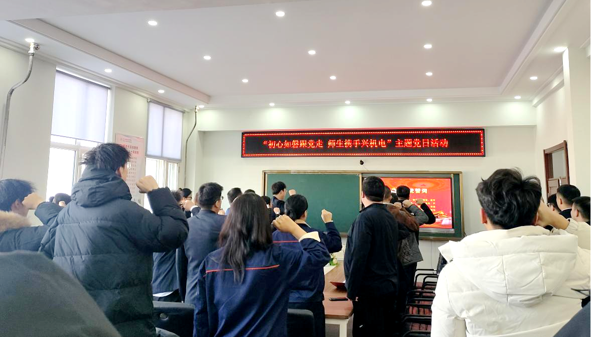 为进一步厚植党员党性根基,强化党员身份意识和党性修养,凝聚奋进新时代的磅礴力量,激励党员干部的责任感和使命感,12月18日,机电学院党委在图书馆608会议室举办“初心如磐跟党走,师生携手兴机电”主题党日活动。活动由机电学院学生党员韩宗畅主持,机电学院全体党员参加。 活动伊始,机电学院党委组织员吕嵩岩带领全体党员,面向党旗庄严宣誓。党员们列队整齐,右手握拳高举,铮铮誓言铿锵有力。重温入党誓词,全体党员进...