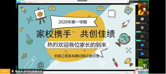 3月18日,机电工程系召开车辆工程专业2018级学生网络家长会。系主任张莹、党总支书记高爱利、学生工作副主任郭明敬、车辆工程专业长宋华与2018级学生及其家长共139人参加会议。 辅导员李妍主持家长会,并用短视频方式...