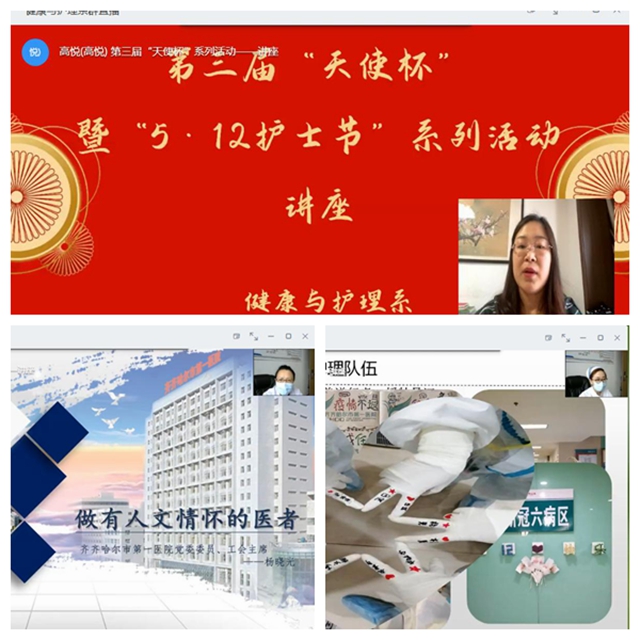 5月31日,健康与护理系举办第三届“天使杯”暨“5.12护士节”系列活动之专家讲座,邀请齐市第一医院工会主席杨晓光、护理部部长千春花,分别作“疫情下的南丁格尔誓言”主题讲座,健康与护理系师生840人聆听讲座。 杨...