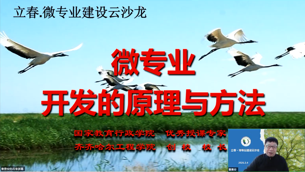 立春,东风送暖,冰融土润,恰是万物萌新时。立春立愿,立课立新。2月4日,由应用型课程建设联盟主办、我校承办的“立春·微专业建设云沙龙”在线举行。沙龙围绕“微专业建设原理与方法”主题,从学理逻辑、建设机制、数智赋能、平台协同等维度展开热烈研讨。活动通过微信视频号、抖音等平台进行公益直播,吸引了超过3000人次在线参与。 应用型课程建设联盟张振笋秘书长主持沙龙。张振笋从多维视角分享本次沙龙主题,并介绍了联...