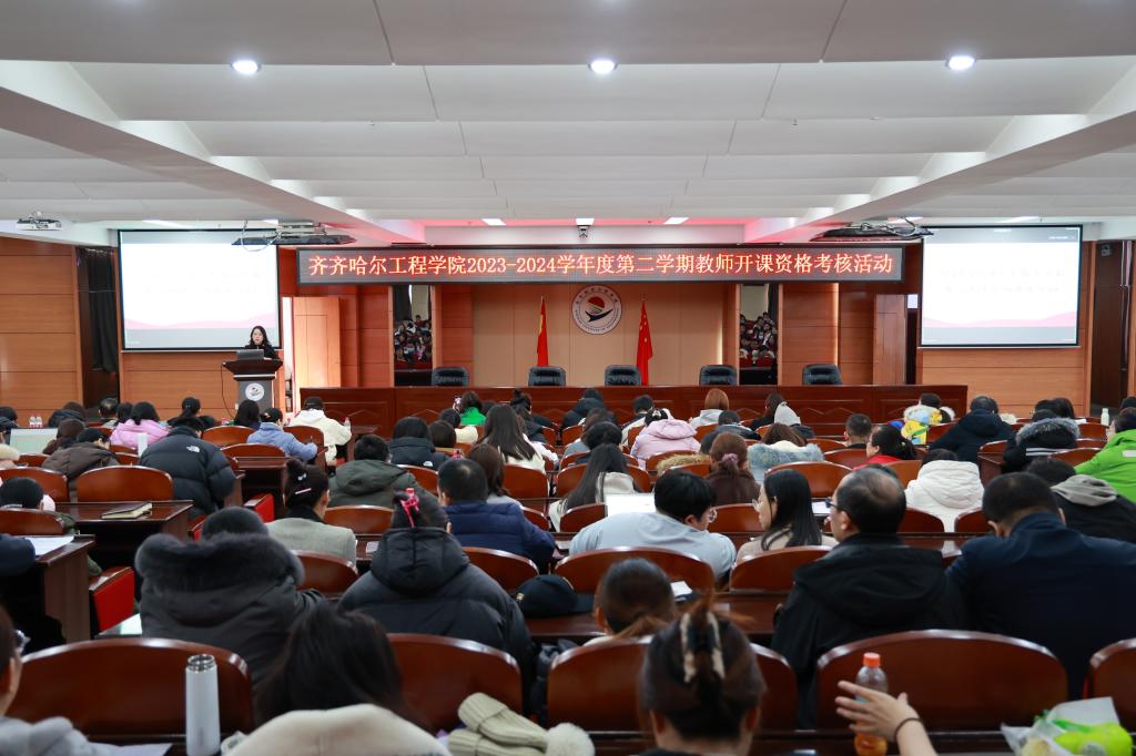 2月24日上午,学校在图书馆601报告厅开展2023-2024学年度第二学期教师开课资格考核活动。理事长曹勇安教授出席并担任特约评委,副院长张静及各教学单位副主任担任评委。各教学单位领导及全体专业负责人、任课教师线下参会,其他教学相关人员线上参会,教务处副处长郝丽娜主持此次活动。活动采用现场“双抽”形式,按部门将教师分为七组,每组随机选定1名任课教师进行说课汇报,同时,基于健康与护理系《中药炮制实训》课程在“...