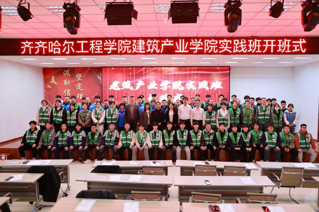 在春风拂面的三月,学校建筑产业学院迎来了一场盛大的开班仪式。3月29日下午,齐齐哈尔工程学院建筑产业学院实践班开班式在学校二教学区2508报告厅举行。学校常务副院长、建筑产业学院院长陈景鑫、副院长张静,建筑工程系党总支书记、系负责人徐明,中建二局第四建筑工程有限公司齐齐哈尔工程学院项目指挥长战乃超、书记郑永会,中国能源建设集团东北电力第二工程有限公司项目经理张德志以及产业学院骨干教师和学生代表近90余人...