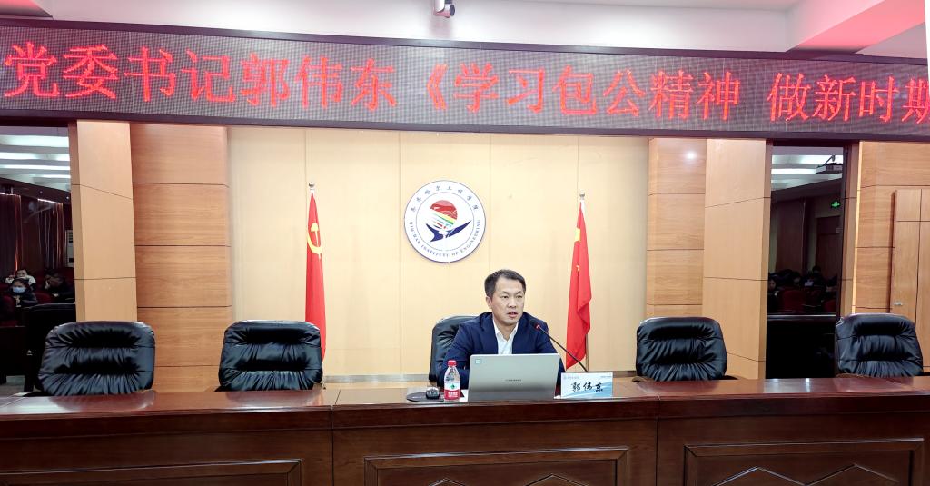 为深入推进党风廉政建设,提升干部队伍的政治素养,1月11日,学校党委书记郭伟东在图书馆601报告厅以《学习包公精神,做新时期好干部》为题讲专题党课。学校领导、骨干学习班全体成员参加。郭伟东以包公的历史形象概述、包公的品质解析为切入点,详细阐述了包公铁面无私、坚持原则的政治立场,守正不阿的为官之道和清正廉洁、一心为民的高尚品格。通过视频和案例讲述包公在断案过程中不畏强权、公正裁决的故事,生动展现了包...