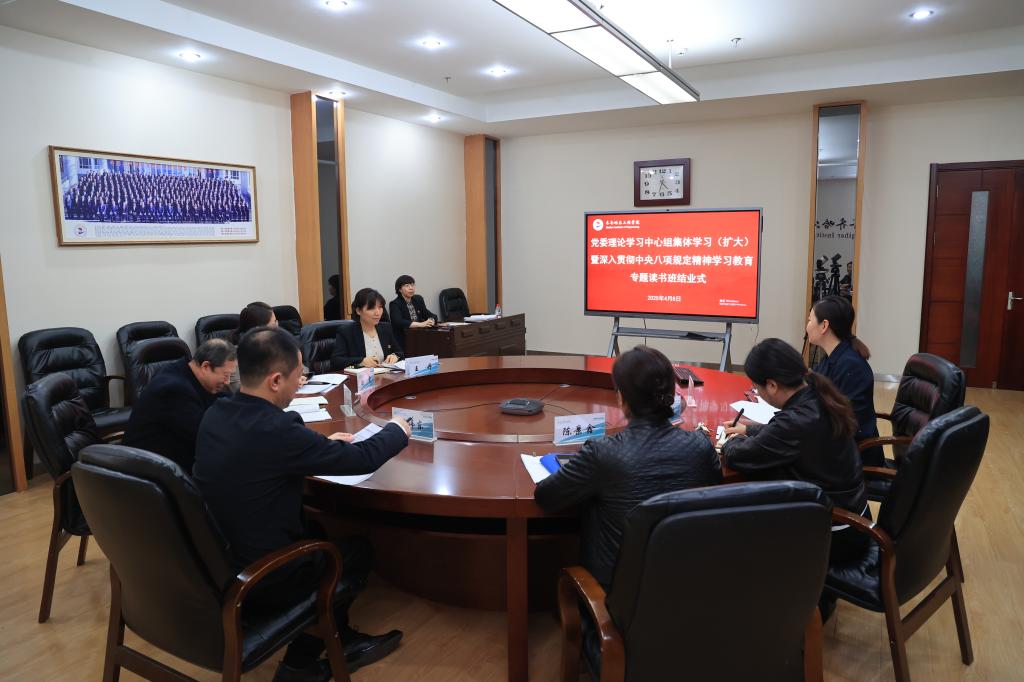 4月7日下午,学校党委在图书馆603南会议室举行深入贯彻中央八项规定精神学习教育专题读书班。党委书记郭伟东主持。党委委员参会并领学,二级党组织书记列席。 会上,郭伟东领学了习近平总书记重要讲话重要指示精神,交流了学习体会。院长、党委副书记曹然彬领学了“中央政治局关于改进工作作风 密切联系群众的八项规定(前四项)”,并作主题发言。党委副书记、副院长陈景鑫领学了“中央政治局关于改进工作作风 密切联系群众的...