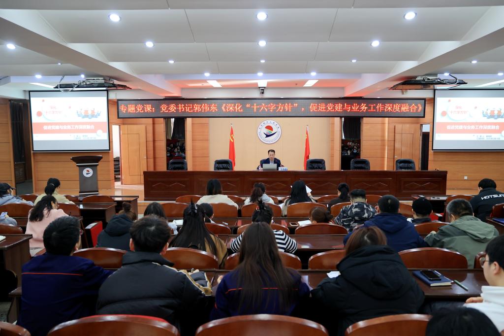 为深入贯彻落实新时代党的建设总要求,推动党建与业务工作深度融合,3月16日,学校党委书记郭伟东在图书馆601报告厅以《深化“十六字”方针,促进党建与业务工作深度融合》为题讲专题党课。学校领导、骨干学习班成员及各支部书记参加。郭伟东详细阐述了党建与业务工作深度融合的重要性,从党建领引、理念融合,三全育人、目标融合,党政合力、机制融合,齐抓落地、成效融合四个方面阐明了学校“十六字”方针的核心意义,并提出...