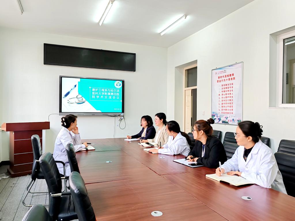 4月16日上午,在一号教学区2104会议室,康护工程系与哈尔滨医科大学附属第四医院神经外科开展学术交流。哈尔滨医科大学附属第四医院神经外科护士长刘爽、康护工程系主任郭玲玲、教学副主任张林琳及护理学(专升本)专业教师参与交流。会上,张林琳介绍了刘爽的专业背景及临床科研成就。 郭玲玲介绍了学校的办学特色、专业建设理念、FT建设模式、产业学院等。她表示,康护工程系目前正在积极筹备护理学专业硕士点的申报工作,...