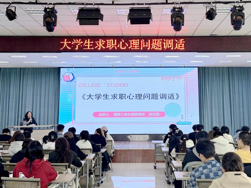 为加强和改进新时代高校学生心理健康教育工作,不断提升心理育人质量,提升学生就业质量。学生发展中心于4月26日邀请国家二级心理咨询师赵文茹老师在二号教学区2508会议室,举办“大学生求职心理问题调适”主题讲座。大学生职业发展协会协办,2021级学生120余人参加。赵文茹从多方面、多角度向学生分析学生在求职过程中可能遇到的各种心理问题,用生动的语言和案例,帮助学生面对就业及择业压力大、求职面试等困惑与问题,对这...